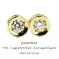 チョコ留め 一粒ダイヤモンド フラワー スタッド ピアス 0.05ct
