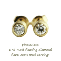 マットフローティング 一粒ダイヤモンド フローラル クロス スタッド ピアス 0.05ct