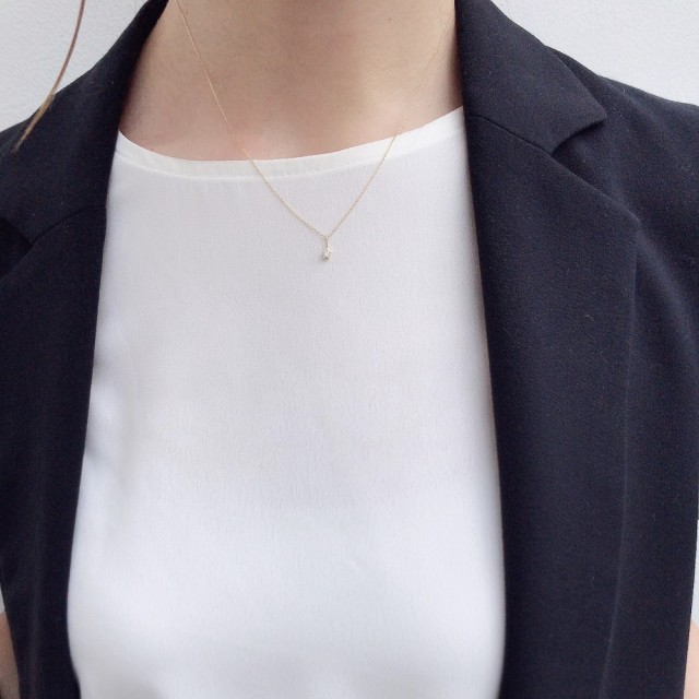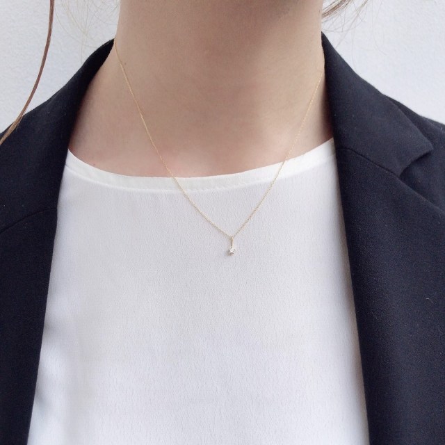オンオフ問わずに身につけられる、華奢な一粒ダイヤモンドチャームです。
