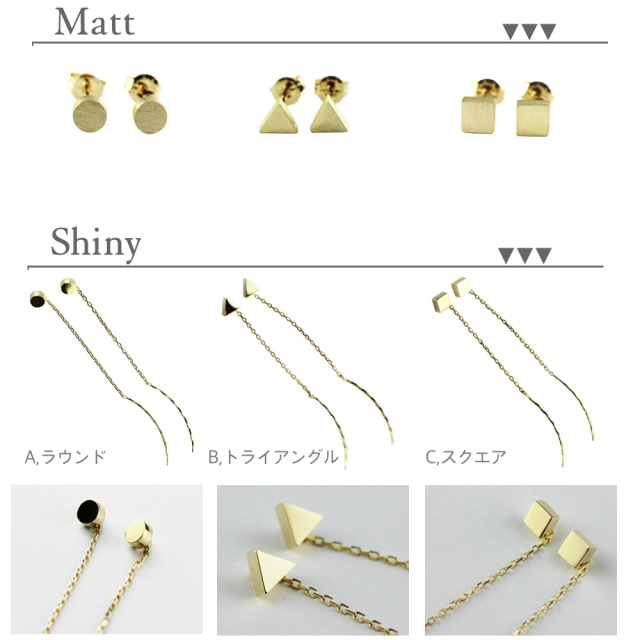 ベーシックでクールな印象で身につけられる「ラウンド」「トライアングル」「スクエア」の3種類からお選び頂けます。